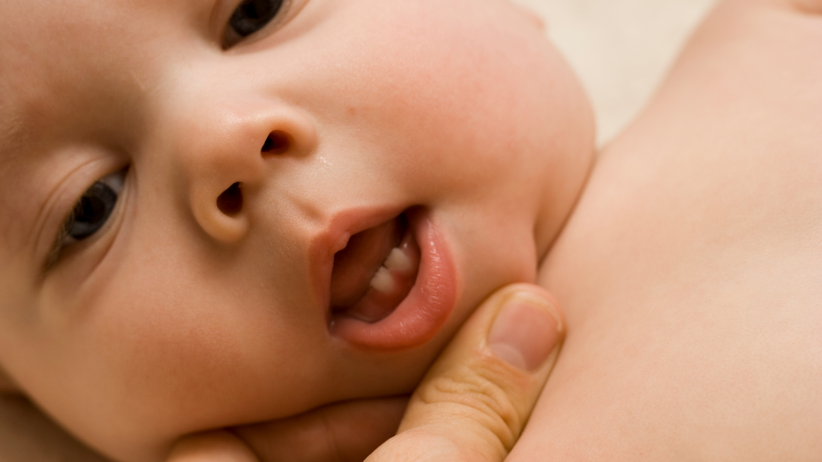 With clean hands, use your finger to softly rub your baby’s gums. Many babies find this calming, especially when they’re extra fussy.