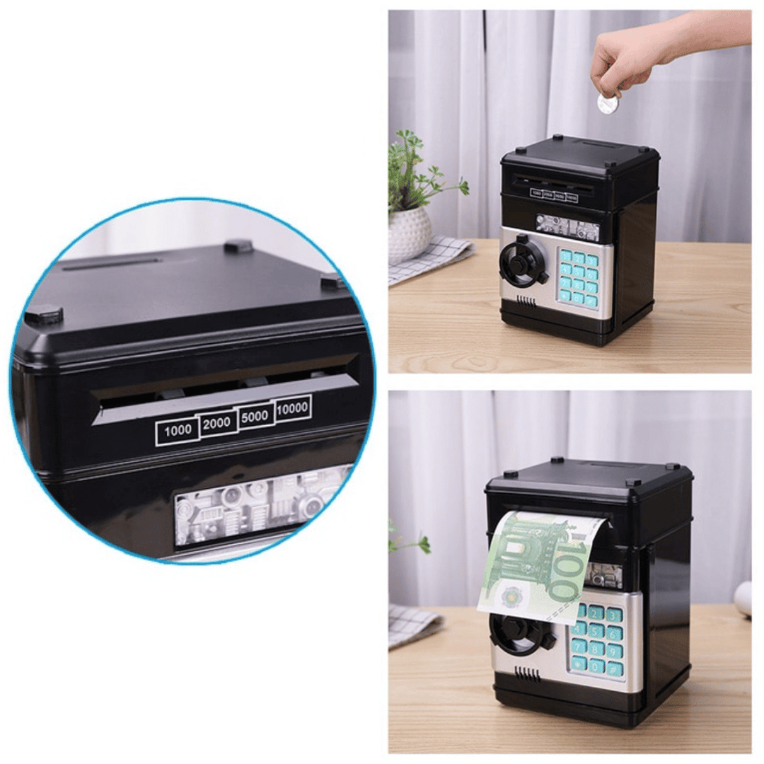 Our stylish Electronic ATM Piggy Bank is designed to provide a realistic banking experience for kids. They can electronically insert both bills and coins, making saving money a fun and educational journey!