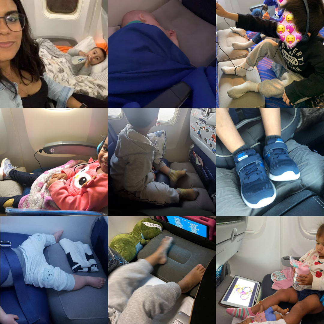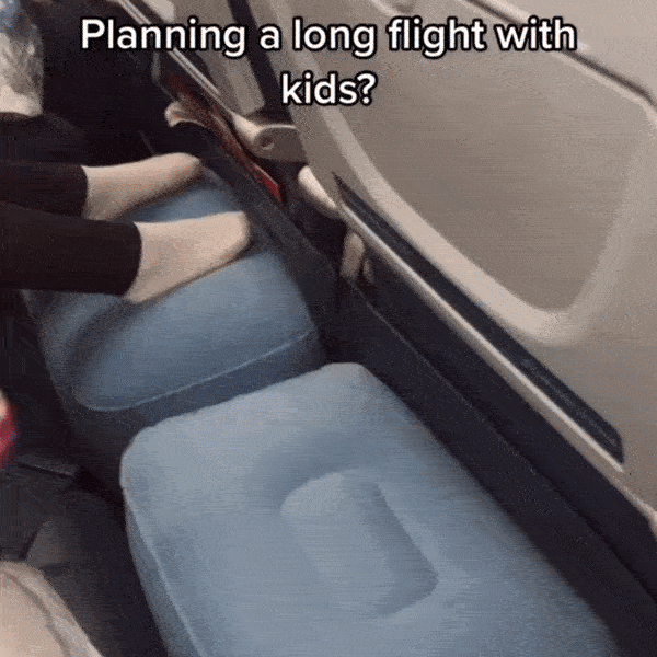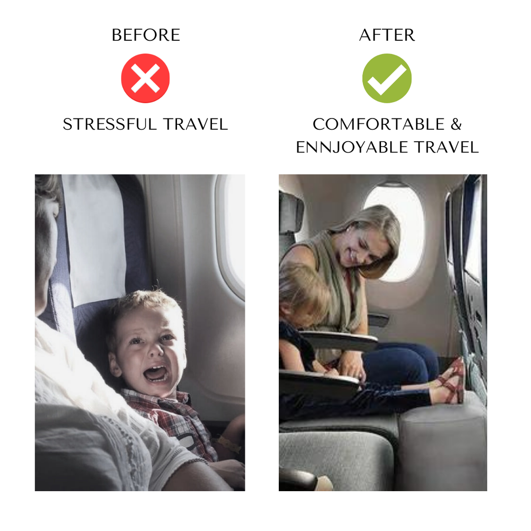 With comfort in mind, our inflatable travel pillow can be used as a footrest, chair for children to sit in the airport or as a bed to lay down flat on flights and backseats!