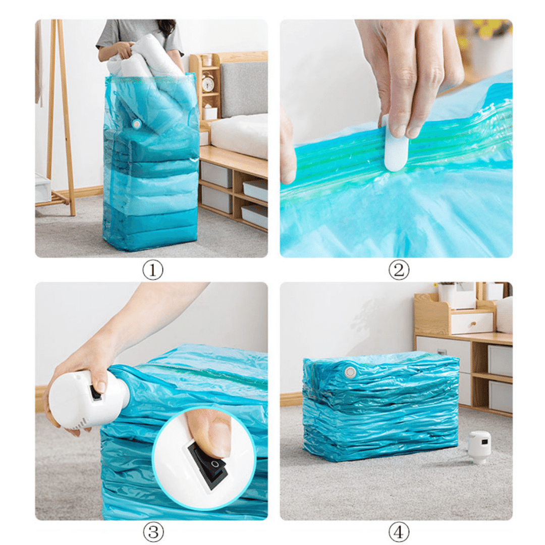 Fabrics compression through vacuum bags allows you to save up to 80% of space in your home and also during travel!
